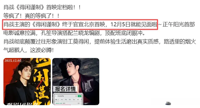 不知道你是否想看肖战与正午首次合作的影片《得闲谨制》呢?#冬日生活打卡季##得闲谨制#正规配资平台推荐