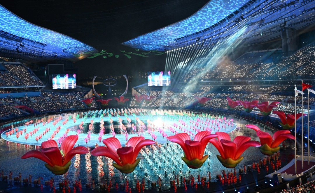 木棉花,在十五运会开幕式的舞台上盛放。它被誉为“南国英雄树,广州第一花”,是岭南文化的代表之一。