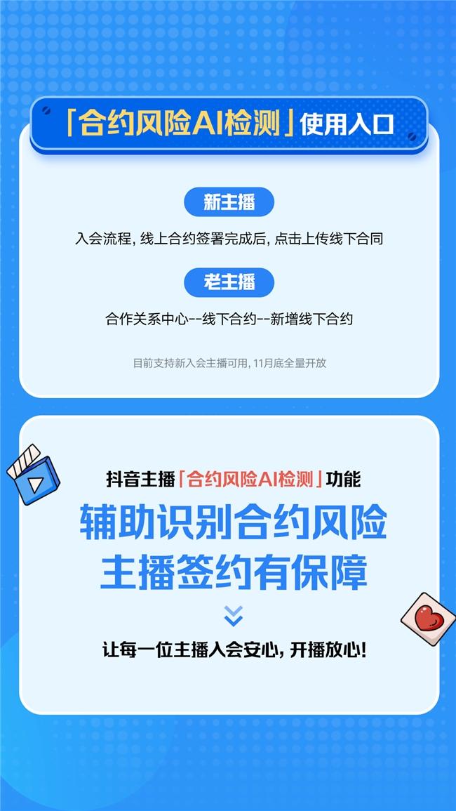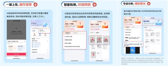 此次“合约风险AI检测”功能上线后,主播可主动上传与直播机构间合约、自行检测,提高了合约检查覆盖率,有助于进一步维护主播权益。
